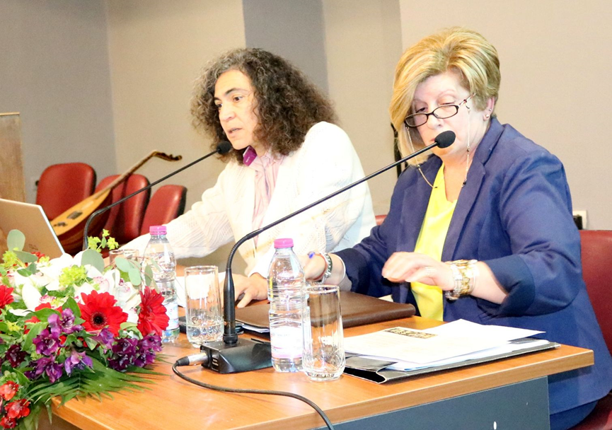 Μίλησε με πολύ παραστατικά λόγια για τις συνήθειες του λαού μας στα διάφορα στάδια του βίου, για την γέννηση την εγκυμοσύνη τον τοκετό την λοχεία και την προτίμηση των ανθρώπων για τα αγόρια γιατί τα θεωρούσαν τους «στυλοβάτες» του σπιτιού και τους άξιους συνεχιστές του ονόματος κάθε οικογένειας. Για τις φροντίδες, από τους οικείους, για την έγκυο και τη λεχώνα. Για την βάπτιση, που θεωρούνταν ως μια θωράκιση των νηπίων απέναντι στο θάνατο. Για τα έθιμα της βάπτισης και τα ονόματα των παππούδων/γιαγιάδων που δίνονταν στα παιδιά. Μίλησε πολύ περιγραφικά και παρεμβάλλοντας γνωστές παροιμίες για τα προξενιά, αρραβώνες, γάμους και τα γλέντια που ακολουθούσαν. Και περιέγραψε τον θάνατο που για τους κατοίκους της αγροτικής κοινωνίας της Αιτωλοακαρνανίας ήταν το απόλυτο κακό. […] Επόμενη ομιλήτρια η κυρία Μαρία Γκιρτζή, Αρχαιολόγος – Καθηγήτρια Σύμβουλος ΕΑΠ, Σχεδιάστρια Εκπαιδευτικών Δράσεων – Πιστοποιημένη ξεναγός, μίλησε με θέμα «Γαμήλιες πρακτικές και η θέση της γυναίκας στο γάμο στην Κλασική αρχαιότητα και το Βυζάντιο». Μεταξύ των άλλων η ομιλήτρια, πολύ επιγραμματικά και εντυπωσιακά, περιέγραψε την θέση της γυναίκας ανά τους αιώνες. Μέσα από ένα πλήθος φιλολογικών πηγών (έπη, τραγωδίες, κωμωδίες, φιλοσοφικά έργα, ιστοριογράφων έργα και πραγματείες, δικανικούς λόγους κτλ.), αλλά και απεικονίσεις αγγείων και γλυπτών άντλησε πληροφορίες για το γάμο στην κλασική αρχαιότητα και τη μετάβαση της γυναίκας από τη γονική εστία στη συζυγική, οι οποίες είναι μεν πολλές, αλλά αρκετές φορές αποσπασματικές ή και αντιφατικές. Για τις γαμήλιες πρακτικές στο Βυζάντιο οι γνώσεις μας είπε, είναι πολύ πιο περιορισμένες, καθώς ιστορικές πηγές που να αναφέρονται άμεσα στον ιδιωτικό βίο των βυζαντινών δεν έχουν σωθεί.[…]